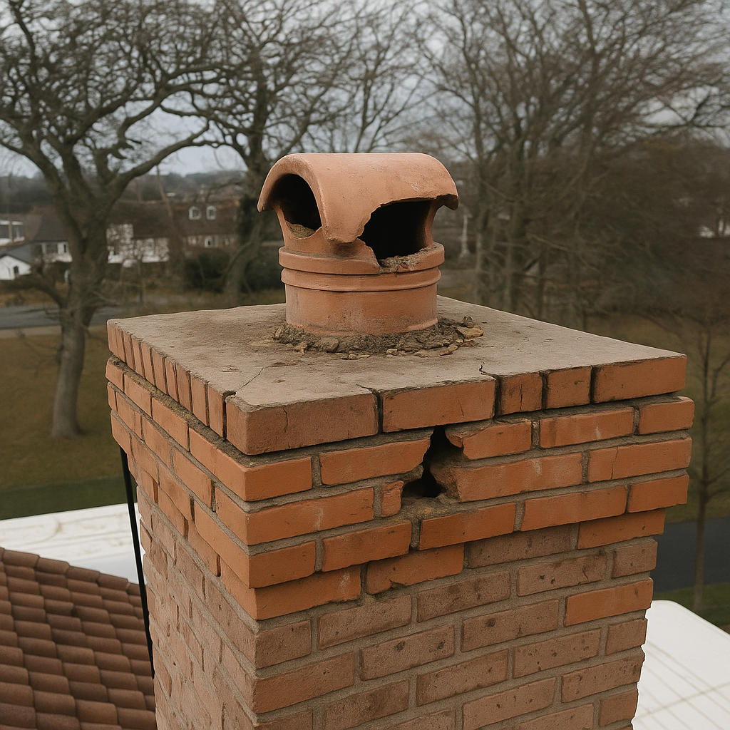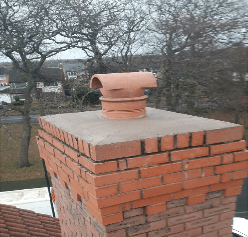 - Demolition and rebuild of the chimney with new flue liners and lead flashing