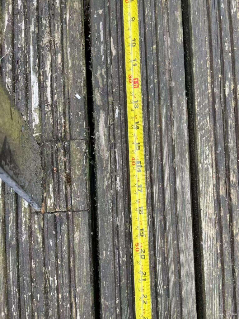 - Full uplift and removal of existing decking boards, fixings and subframe