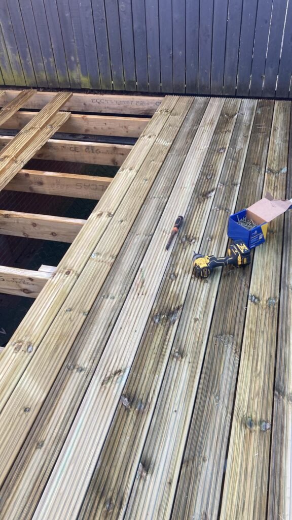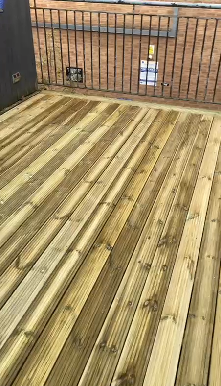 - Installation of FSC-certified, pressure-treated softwood decking boards