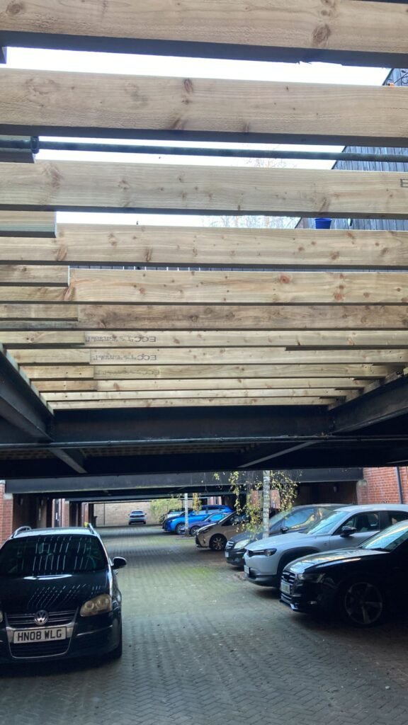 - Moisture retention issues – A slight fall and grooved decking boards were incorporated to promote efficient water run-off and reduce future maintenance needs.